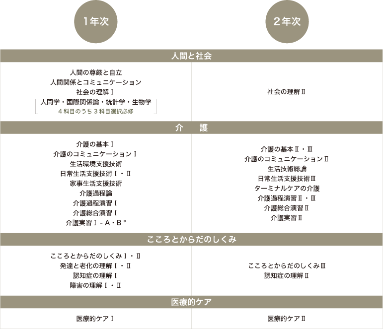 *:介護実習Ⅰはグループ施設の協力のもとに行います。