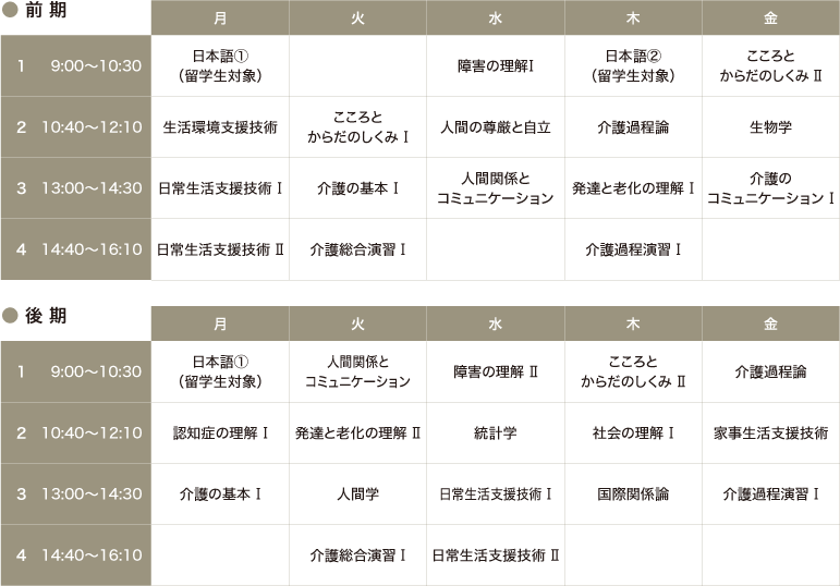※この時間割は例であり、変更になる可能性があります。