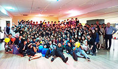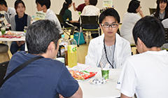 - 装飾されたラウンジを舞台にピザや寿司など軽食を片手に、話したことのない学生や教員との交流を深める懇親会