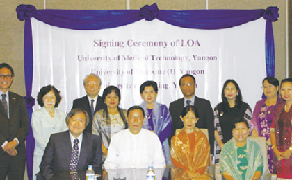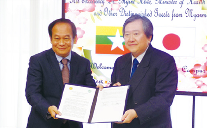 ミャンマーのヤンゴン第一医科大学・ヤンゴン看護大学・ヤンゴン医療技術大学との調印式。 (2013年12月) -