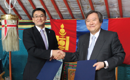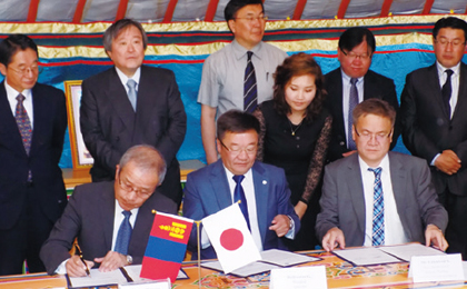 モンゴル保健スポーツ省エンクホルド局長同席のもとモンゴル国立医療科学大学と医学部留学生受け入れの覚書を締結。 (2016年6月) -