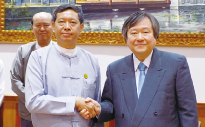 ミャンマーのミン・トゥエ保健スポーツ大臣と医学部留学生受け入れの覚書を締結。(2016年9月) -
