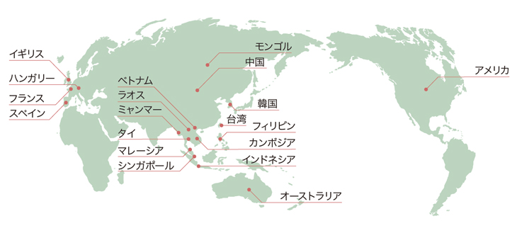 東南アジア諸国とは、教員・技術者・学生などの人的な交流にとどまらず、数多くのプロジェクトでイニシアチブを発揮するなど、画期的な協力関係を築き上げています。また、ベトナム、ミャンマー、モンゴル、カンボジア、インドネシア、ラオスの政府や大学と医学部留学生の受け入れに関わる協定を締結しています。