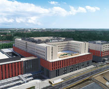手術支援ロボット「ダビンチXi 」による低侵襲手術の実施や、県北地域で唯一、PET-CT検査ができるなど、基幹病院として地域医療を支える。医学部生が臨床実習を開始する2020年からは、中核的な臨床実習施設となるため宿泊棟や研究棟を併設。