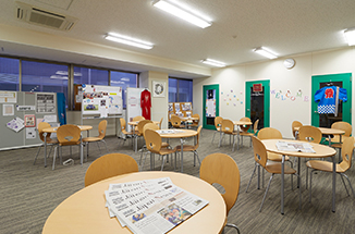 明るく広々したスペースに、椅子とテーブルが配され、打ち合わせや自習、ランチタイムなどに活躍しています。