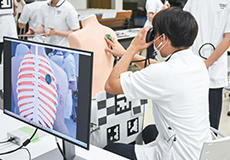 対象の健康状態を知るための知識と技術、考え方を講義・演習を通して学修します。呼吸・循環の授業では、本学オリジナルの仮想教材を用いて身体内部の構造を見える化し、知識や技術を深めていきます