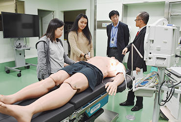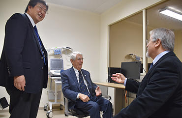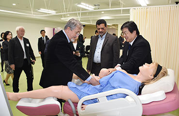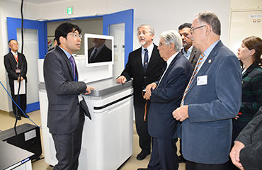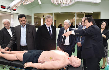 一行は成田キャンパスでシミュレーションセンターやゲノム医学研究所などを見学し、その後、医学部教員らと昼食を楽しみながら、親交を深めました。成田キャンパス視察後には、東京にある本学附属病院である三田病院、臨床医学研究センターである山王病院を見学しました。