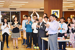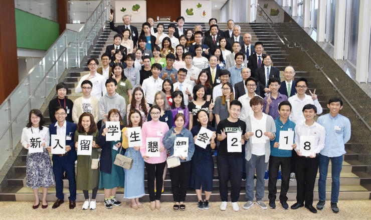 5月25日の夕刻、EB棟1階の食堂で「2018年度新入留学生懇親会」を開催しました。新入留学生27人、新任外国人教員8人を含め、留学生・教員総勢70人が参加しました。