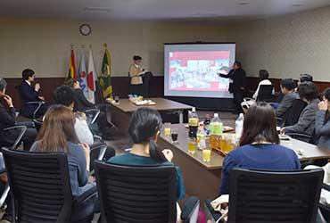 本学では、各学科のカリキュラム、看護教育などの講義を受け、医学検査学科、看護学科、医学部棟の成田シミュレーションセンターの施設を見学しました。2人は日本の進んだ教育や学修環境を知り、驚くとともに、日本での学びを母国で生かしたいと述べていました。最後の交流会では、教職員に加えてスペイン語サークルの医学部の学生も参加しました。2人は参加者に自国の観光スポットを紹介し、その後、お菓子を食べながら歓談して交流を深めました。