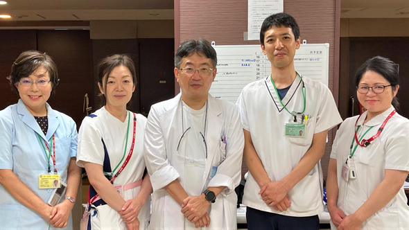 本学市川病院回復期リハ病棟スタッフ(左から、中村、中嶋、久保、北原、金子)