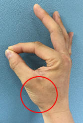 母指の基部にあるCM関節に生じる変形性関節症です。加齢や使い過ぎが原因と考えられています。物をつまむ動作、握る動作、瓶のふたを開ける等の動作で、母指基部に疼痛が生じます。装具や消炎鎮痛薬を使用した保存療法で症状が改善しない場合、手術を行います。当院では主に、関節形成術を行っています。母指の疼痛でお困りの際にはご相談いただければと思います。