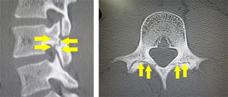 体幹の柔軟性が失われたり、転倒により骨折を生じやすいことがあります。非常に不安定性が強い骨折となったり、軽微な転倒後の数ヶ月後に神経障害を生じたりすることがあるので注意が必要です。