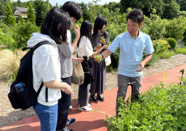 また、ハーブ園見学では植物のにおいをかいだり、味見をしたり、五感を使って植物を勉強することができました。