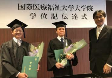 2025年3月9日(日)、成田キャンパスにおいて、大学院の学位記授与式・伝達式が盛大に行われました。薬学研究科では、社会人大学院生の長瀬友樹さんと駒坂太嘉雄さんがそれぞれ学位を授与されました。