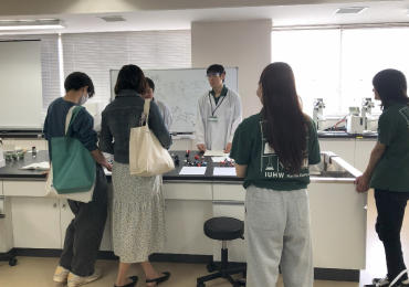 薬学部では、学科紹介やフロア見学、薬学部のサークルの紹介などを行いました。学生がフロアを案内しながら、学生生活や受験のアドバイスについてお話させていただきました。