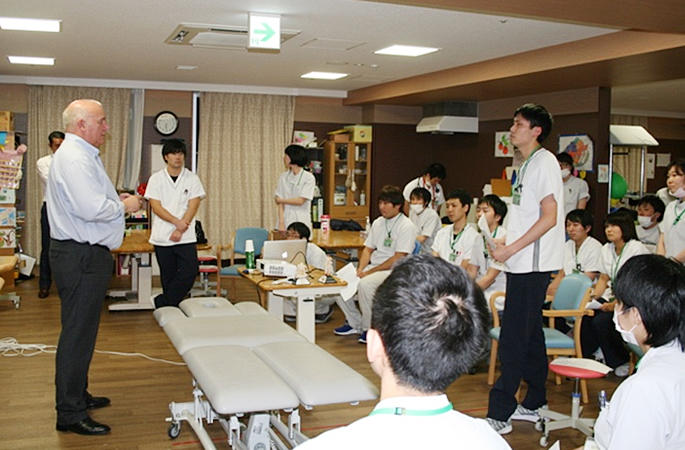 来訪2日目は、国際医療福祉大学市川病院を訪れ、病院見学とリハビリテーションスタッフ(理学療法士・作業療法士)に向けての講演を行った。講演は内容を濃縮し、ニュージーランドの理学療法の特徴であるダイレクトアクセス(開業権)について情報提供を行った。