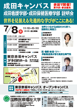 7月8日(日)東京赤坂キャンパスで成田看護学部と成田保健医療学部の説明会を開催します