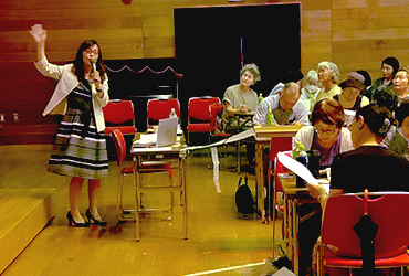 地区の65歳以上の方100人以上にご参加いただき、飲み込み状態のチェックや自主トレーニング体験などをしていただきました。皆さんとても熱心に聞かれ、随所に笑い声や歓声が混ざり、健康に対する関心の高さに感激しました。終了後にはたくさんの質問をいただきました。これからも多くの機会をいただき、地域の方々のお役に立てれば幸いです!