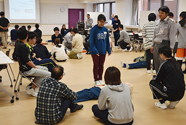 12月8~9日、本学にて応急手当普及員講習を実施し、すでに上級救命講習を履修した学生40人、教員2人が参加しました。この講習の目的は、胸骨圧迫、人工呼吸、AED操作などについて、その指導技法を習得することです。2日間にわたって実技と講義を繰り返した結果、見事に全員が修了し、成田市消防から認定証が交付されました。これによって、普通救命講習及び救命入門コースに指導員として従事することができるようになりました。修了者の多くは来年4月に医学部の新入生を対象に実施する「ウェルカムBLS」で指導員としてデビューすることになります。