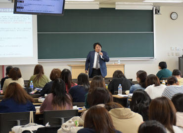 成田看護学部・成田保健医療学部では各国の医療福祉事情を学ぶ海外研修「海外保健福祉事情」が必修となっています。5月10日、研修の事前講義の一環として、外務省領事局海外邦人安全課主査の金嶋裕一郎様をお招きして、海外における安全対策についての講義を実施しました。この様子は全国の6キャンパスを遠隔システムでつなぎ、合計で約770人の学生が受講しました。『海外における安全対策:楽しい思い出と共に帰国するために』のタイトルのもと、講師ご自身の海外での体験もふまえながら、海外におけるリスク、安全のための方策などについて約1時間お話しいただきました。