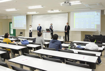 「医学部キャンパス説明会」は「本学医学部の紹介」と「入試説明」に続いて、教員と学生による「英語授業の紹介」と「質疑応答」を実施しました。