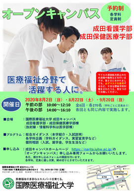 8月2日(日)、22日(土)、9月20日(日)成田看護学部・成田保健医療学部オープンキャンパスを開催