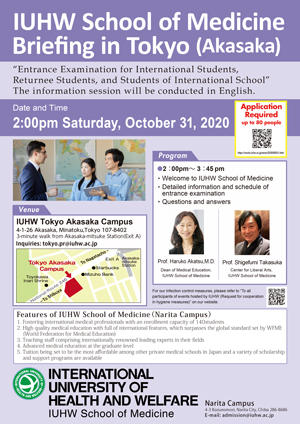 IUHW School of Medicine Briefing in Tokyo (Akasaka) Saturday, October 31, 2020