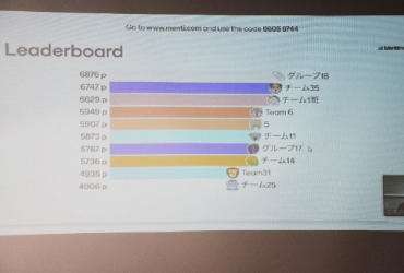当日は教員も合わせて約140名の参加があり、zoomのブレイクアウトルーム機能とMentimeterを使用して、チーム対抗のクイズ大会が行われました。