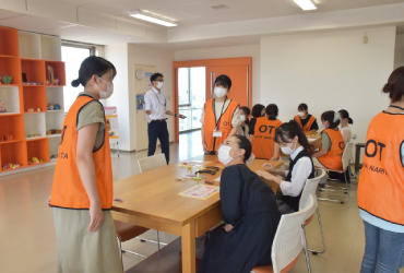 作業療法学科では在学生が学科カラーのベスト姿で
