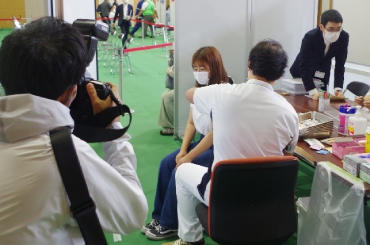 販売店スタッフの接種風景を読売新聞社が取材