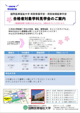成田看護学部・成田保健医療学部「合格者対象学科見学会」のご案内