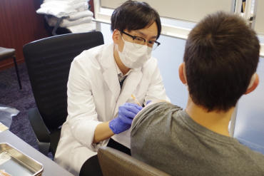 新型コロナウイルスの3回目のワクチン接種が急がれるなか、こうした方々を対象とした本学成田キャンパスでの職域接種が、3月17日始まりました=写真。接種会場では、昨年の2回目までの職域接種と同じく、問診、接種、経過観察や書類処理などすべての作業を本学の教職員らで担当しています。