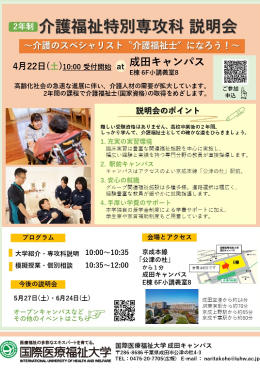4/22(土)介護福祉特別専攻科説明会を開催します