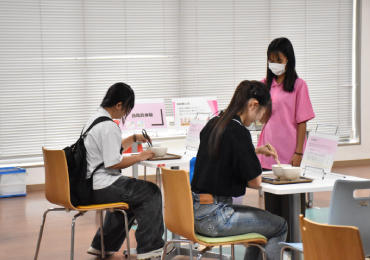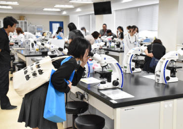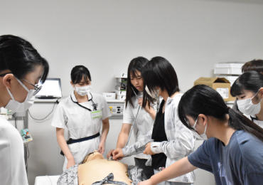 - 看護学科:シミュレーションラボでの聴診体験。高齢者疑似体験。模擬授業。