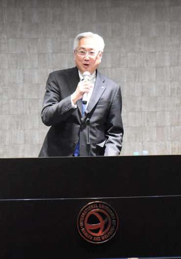 しめくくりに作詞家・永六輔の言葉「のれん と しにせ」を紹介。「守るべきものは守り,変えるべきものは変えていくことが大切」と強調しながら、「国際医療福祉大学とも、この精神で一緒に新たな医療の世界に貢献していきたい」と述べました。