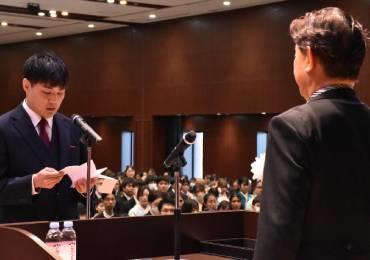 医学部126名、成田看護学部101名、成田保健医療学部303名、大学院博士課程10名、修士課程36名の計576名に学位記が授与されました。また、臨床工学特別専攻科10名、介護福祉特別専攻科20名の修了生に修了証書が授与されました。介護福祉特別専攻科は今年度、一期生が修了となります。