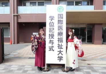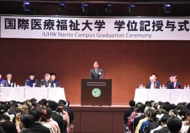 前日までの雪空から一変、春らしい暖かな天候のなか3月9日(日)。国際医療福祉大学成田病院国際ホールにて医学部、成田看護学部、成田保健医療学部、大学院および臨床工学特別専攻科、介護福祉特別専攻科の学位記授与式が執り行われました。