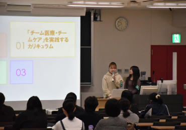 - 先輩トーク:学生の時から学ぶ、チーム医療・チームケアについて在学生が解説。