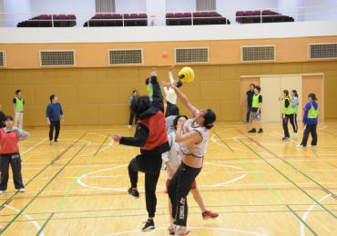 当初、新しく成田キャンパスに設置された新グラウンドのこけら落とし開催を予定していましたが、あいにくの空模様のため体育館にて開催。学科混成のチーム対抗で、午前中に借物競争、綱引き、お昼休みを挟んでドッジボールやしっぽ取りゲーム、リレーを実施しました。今回教職員チームも急遽参加し、会場が大いに盛り上がりました。