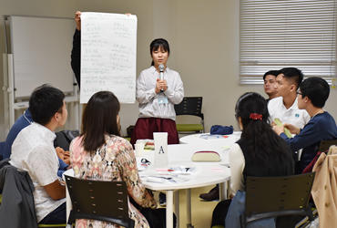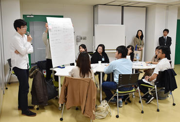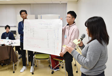 2月15日、本学において、成田市企画政策課が主催する市民参画推進事業「外国人との共生について考えるワークショップ」が開催され、本学の学生31人(留学生17人・日本人14人)が参加しました。初めに、成田市の担当者から市の概要について説明があり、その後はグループに分かれて、「成田市の感想」、「日本人と外国人とが共生するために大事なこと」「皆が望む多文化共生のまち」を主なテーマとして意見を出し合い、「これからの成田」についての意見をまとめました。