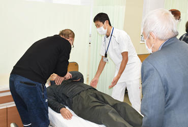 成田キャンパス模擬患者の会は4年目を迎えました。今年度は新型コロナウイルスの影響で講習会の開催を見合わせていましたが、8月17日、今年度最初の講習会を実施しました。来校された20人のほか、4人が遠隔会議システムでの参加となりました。