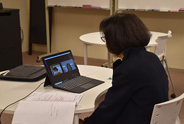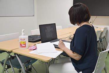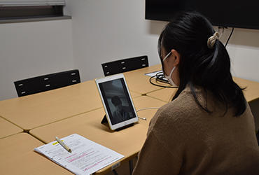 今回の課題は「オンライン医療面接」。遠隔会議システムを用いた医療面接を体験すべく、過去に練習したシナリオを使って、模擬患者さん同士で遠隔会議システムでのやりとりを確認していました。全4回の講習会を経て、12月から来年2月にかけて、医学部2年生、3年生の授業と試験に参加する予定です。