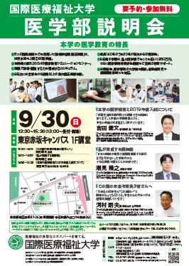 9月30日(日) 医学部説明会を開催します(会場:東京赤坂キャンパス 講堂)