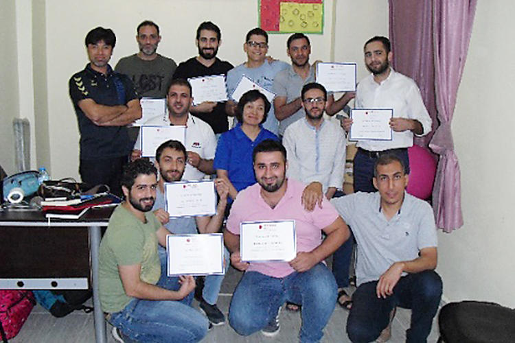 シリアの内戦は2011年から続き、トルコにおけるシリア難民は約350万人、うち20~25%が障害を抱えていると推計されています。難民登録されたシリア人は、トルコ政府からの医療や教育における公的なサービスを受けられます。しかし、残された障害に対するリハビリテーション支援は皆無です。そのため、AARはシリアで理学療法士の資格を取得した11名を雇用し、物資援助も含めたリハビリテーション支援を展開しています。拠点はイス タンブール(PT2名)、マルディン(PT3名)、シャンルウルファ(PT6名)の3か所です。戦傷による切断者も多く、治療技術の向上が望まれていました。
