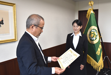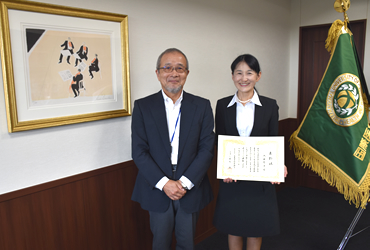 この表彰者に、本学から医学部の池田啓子教授が選定され、9月7日、大友邦学長より表彰状を手渡しました。