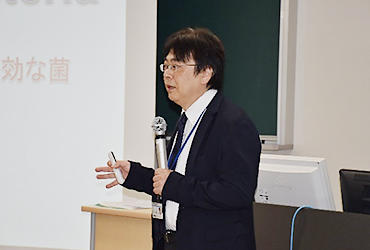 10月13日、医学部感染症学講座、主任教授の松本哲哉教授よる公開講座が行われました。タイトルは「みんなの身近にある感染症 ~自分を守るノウハウを含めて~」で、風邪や肺炎などの耳馴染みのあるものから、身近にありながら聞いたことのないペットを介した感染症までさまざまな種類の感染症を解説しました。