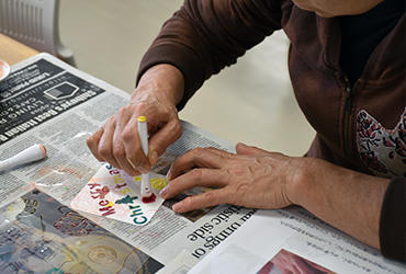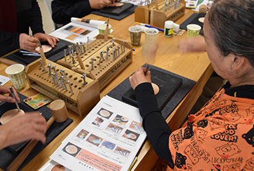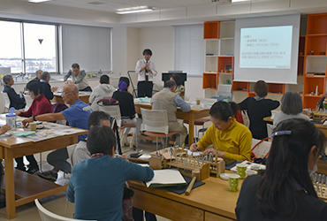 11月16日、作業療法学科による公開講座を実施しました。テーマは「あなたの生活をまるごと元気に! 作業療法!」。まず、石井清志助教が身体や精神に障害を持つ人の生活場面に着目する作業療法について説明しました。続いて、ステンシルや革細工の創作体験と福祉器具の使用体験に移りました。創作活動は手先の運動はもとより、デザインを考えるなど精神活動を引き出し、これをリハビリに活用することも作業療法の特徴です。また、福祉器具を手にとって、使い方を考えたり、そのアイデアに驚いたりしている人や、車椅子の操作を体験している人など、福祉器具を身近に感じている様子が伺えました。
