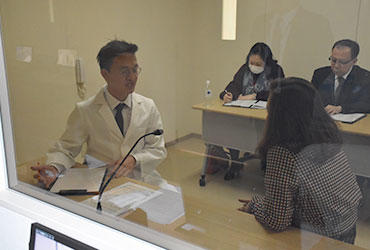 1月21日、「成田キャンパス模擬患者の会」の協力のもと、医学部1年生の「医療面接試験」を実施しました。模擬患者の皆さんは昨年の4月以降、計8回の講習会に出席し、この試験に向けて4回のシナリオ演習を重ねてきました。試験は模擬診察室で行われ、緊張する学生を相手に、模擬患者さんはほかの模擬患者さんの演技を確かめながら余裕をもって演技していました。学生、指導教員、評価者、模擬患者さんが集った最後の講評では、学生から感謝のことばが送られるとともに、模擬患者さんからも励ましと感謝のことばが送られ、お互いに学び合う関係が築かれていることを確認することができました。
