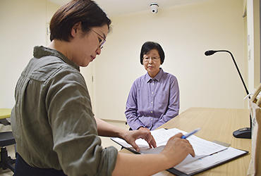6月13日、今年度3回目の講習会を実施しました。今回は20日の医学科2年生の授業『医療面接・身体診察Ⅱ』を1週間後に控えて、シナリオ練習の総仕上げを行いました。本番前最後の練習とあって、すでに緊張感も漂っていましたが、どの模擬患者さんもセリフがしっかり頭に入っていて、ぶれのない患者像ができあがっていました。成田キャンパス模擬患者の会は3年目に入り、授業協力はこれで4回目になります。多くの模擬患者さんがすでに何度も授業を経験していますが、本番に備えて入念に基本事項を再確認していました。体調を整えて本番に臨んでいただきたいと思います。