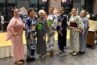 また懇親会では、東京赤坂キャンパスレストラン「AUBE」とカフェテリアで世界各国からの参加者が日本の盆踊りを体験するなど、異文化交流が図られました。(写真3)